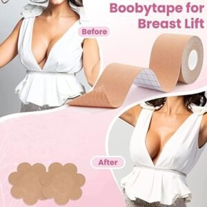 Boob Tape with Nipple Covers: Cotton, Breathable, Lift & Support (5m, 10 Pairs)