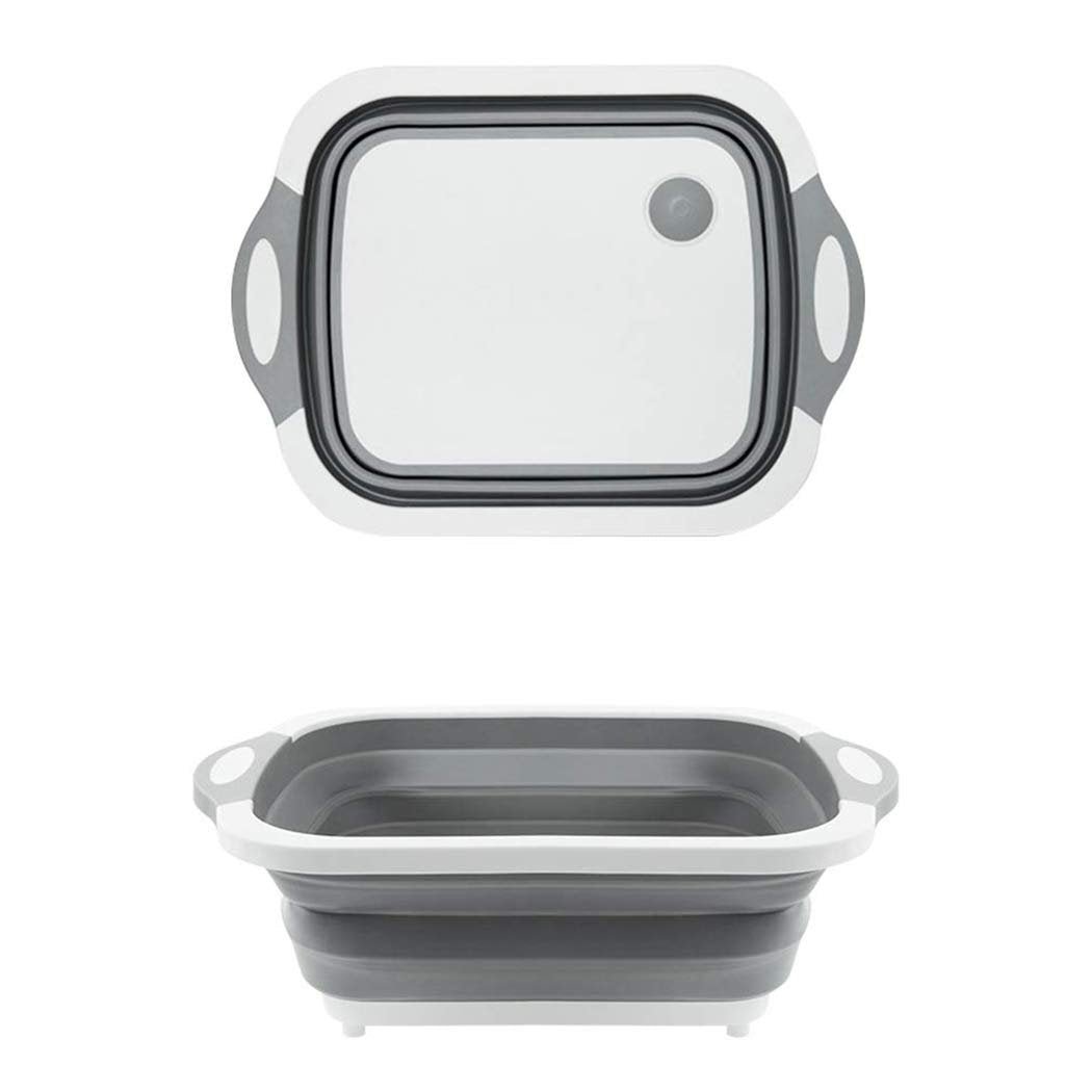 Can be used as dish tub for household needs and camping clean-up such as washing dishes and carrying iced beverages, durable chopping board for cutting, chopping and slicing after folding ideal for dishes/fruit/vegetable/meat/seafood/ or dish rack for utensil