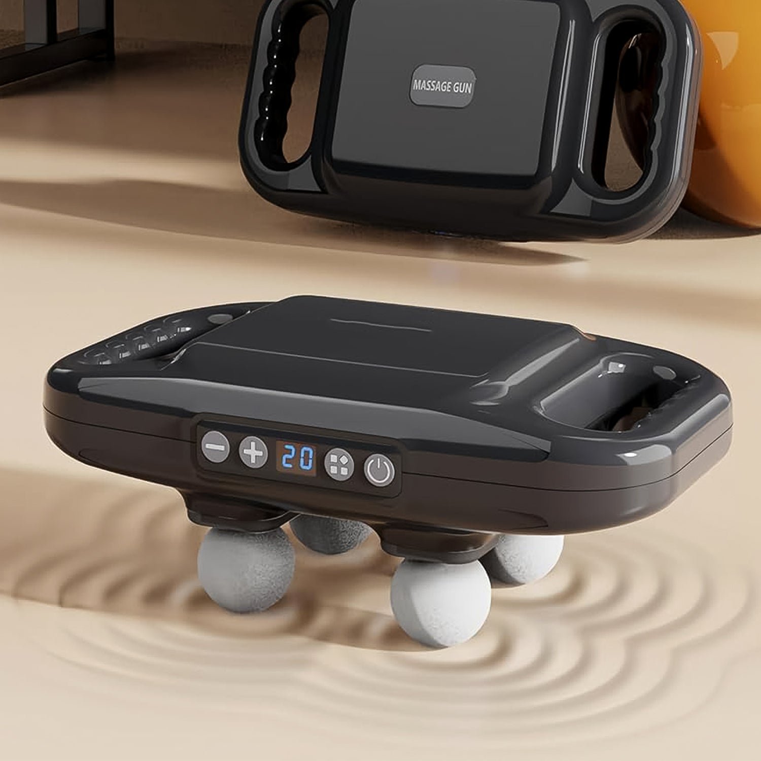 - Massage Gun with 4 Massage Heads ; Our 4-Head massage gun deep tissue has 4 massage heads, which can massage a large area and relax muscles of about 22,300 square millimeters. It is suitable for large muscle groups, such as back, neck, shoulder muscles.