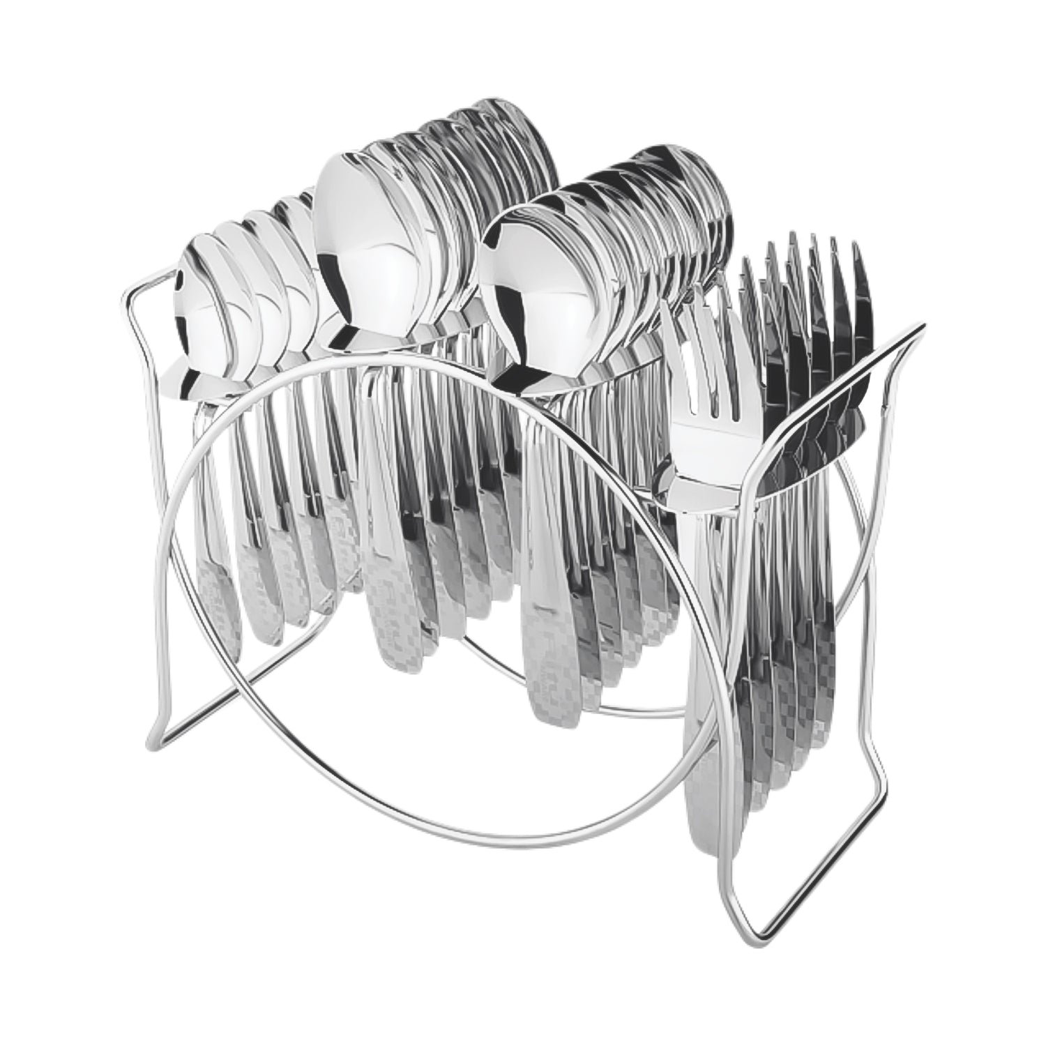 24 Pc Stainless Steel Cutlery Set with Elegant Storage Stand – Mirror Finish Spoons, Forks, and Knives for Home Dining, Events, and Gifts (Silver)